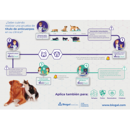 Permite hacer un estudio inmunitario del animal. Semicuantifica el título de anticuerpos que tiene un animal frente a 3 agentes Calivirus, Herpesvirus y Panleucopenia, a partir de la misma muestra.